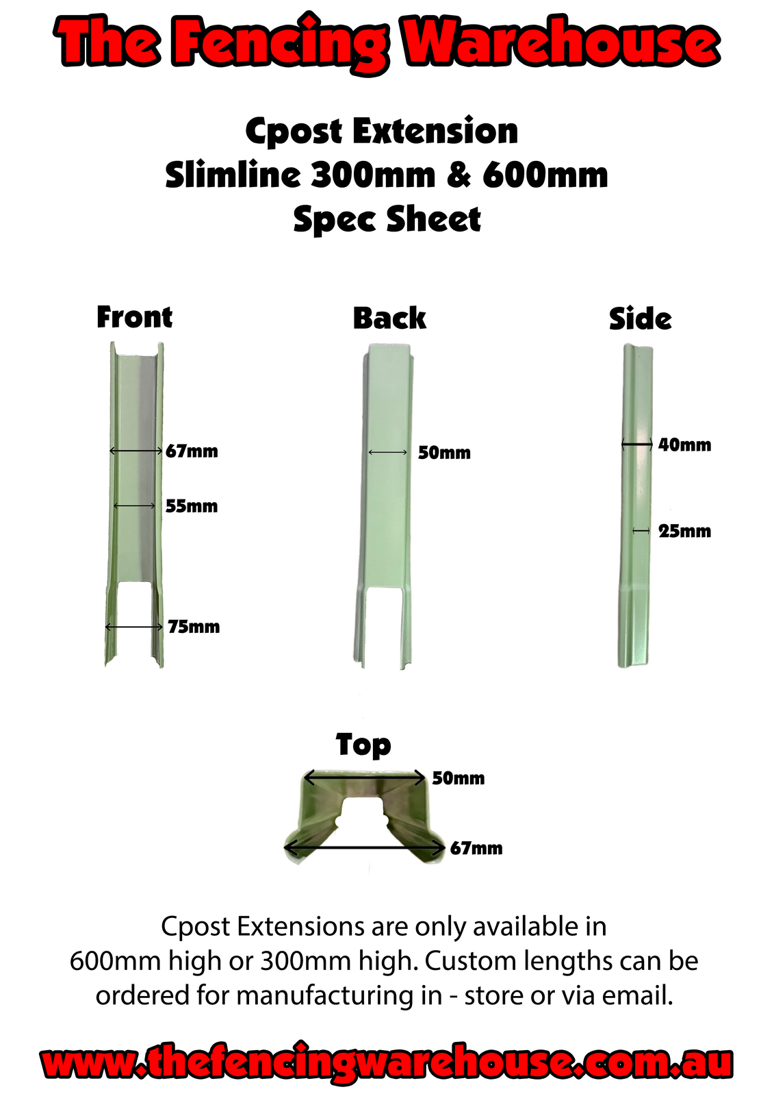 Slimline extensions are compatible only with Slimline channel posts. The Fencing Warehouse strongly recommends verifying that you are selecting the correct design for your existing fence. If you are purchasing channel posts with this order, please ensure that the posts and extensions are the same style. To shop our range of Slimline Cpost, click Here and select "Slimline".