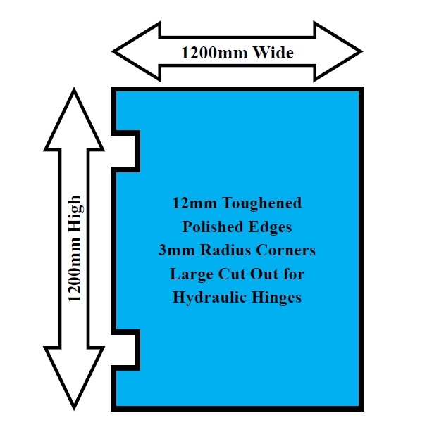 Pool Fence glass hydraulic hinge panel 12mm, toughened, clear. 1200mm x 1200mm